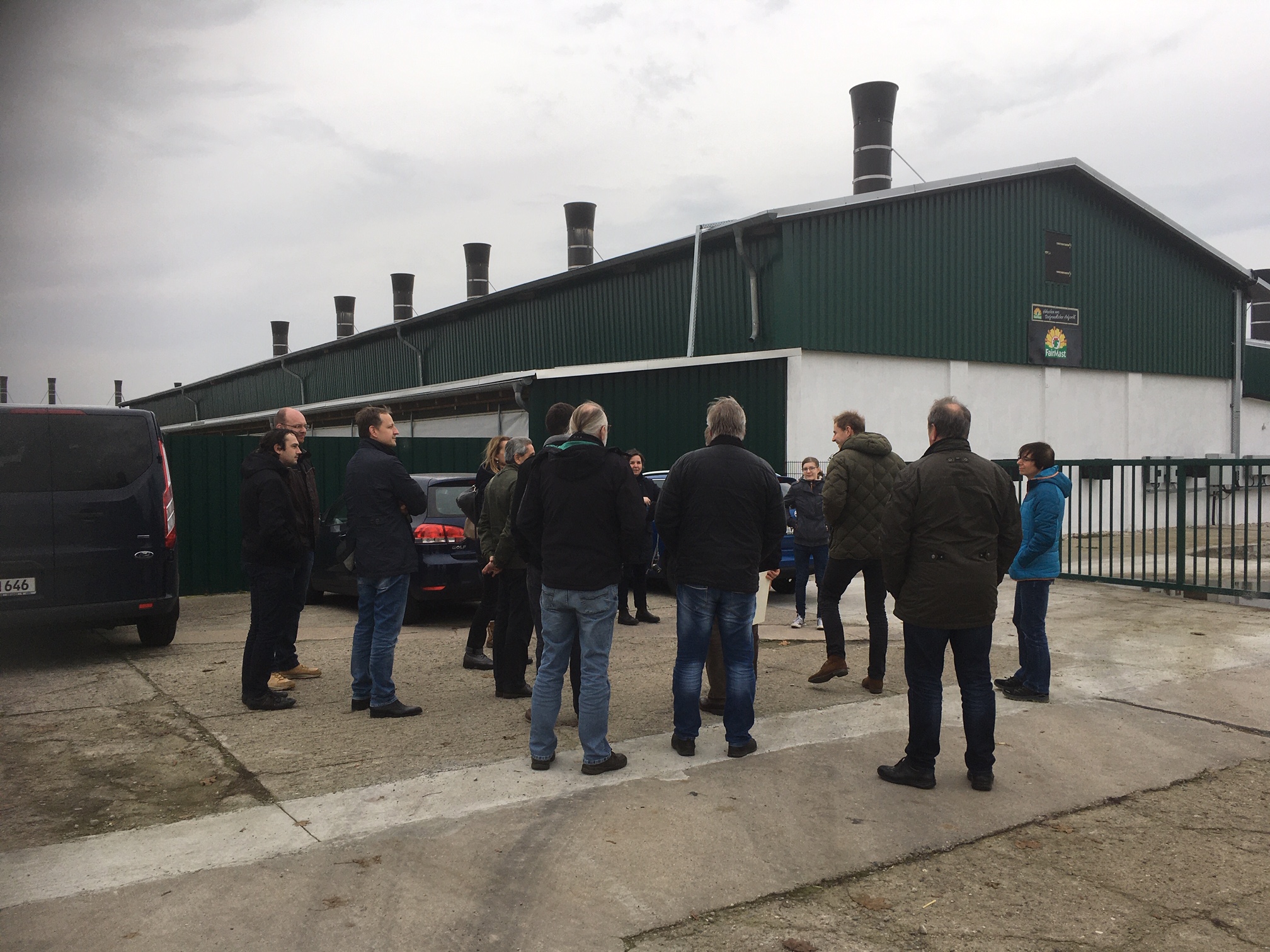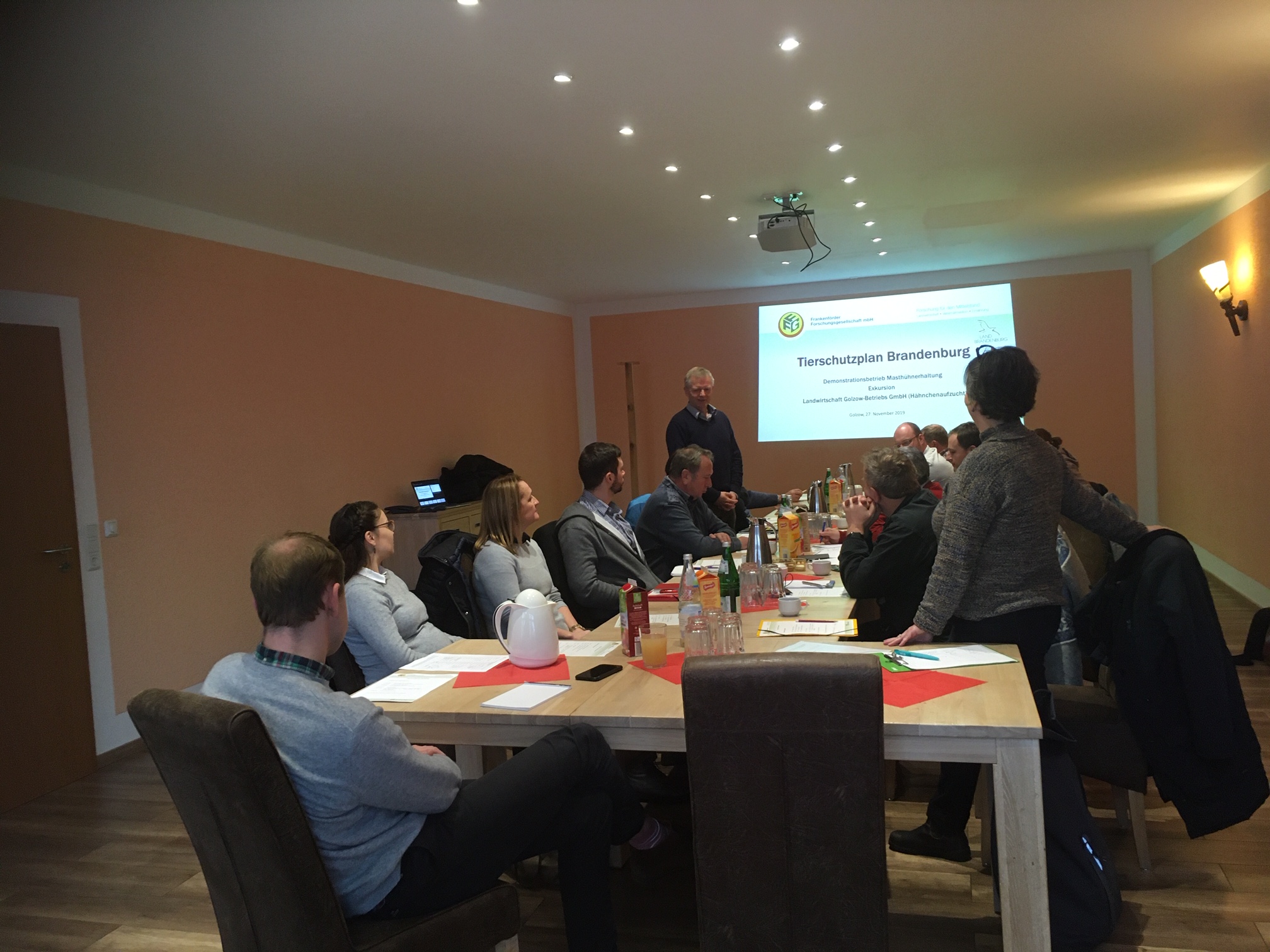 Nach der Kurzeinführung mit Übersicht über die Historie zur Enstehung und Umsetzung des Tierschutzplanes von Frau Dr. Rus wurde der Hähnchenmastbetrieb der Landwirtcshaft Golzow Betreibs GmbH von Herrn Krumsiek vorgestellt.